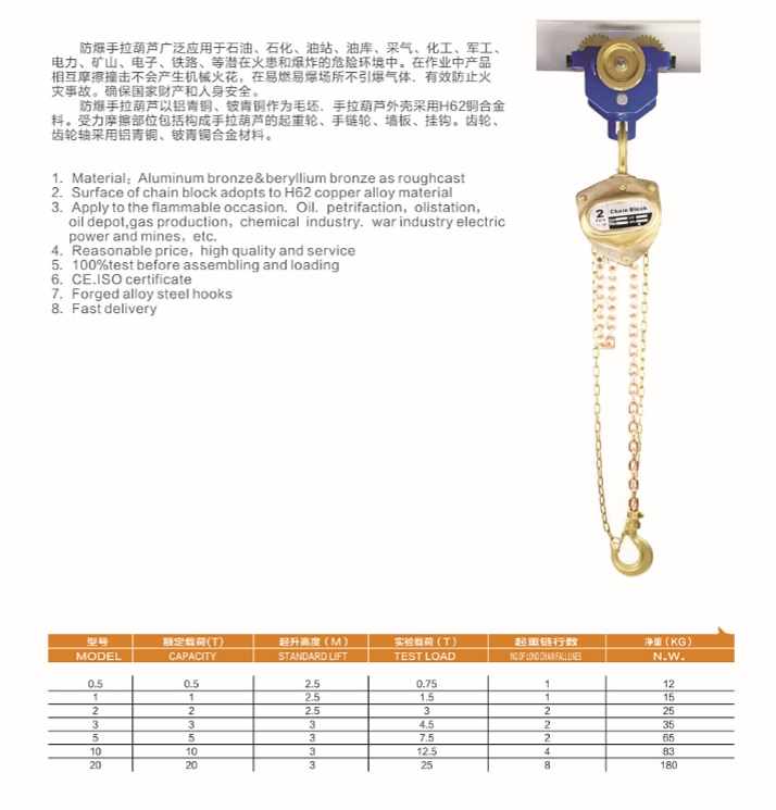 Surface of chain block adopts to H62 copper alloy material