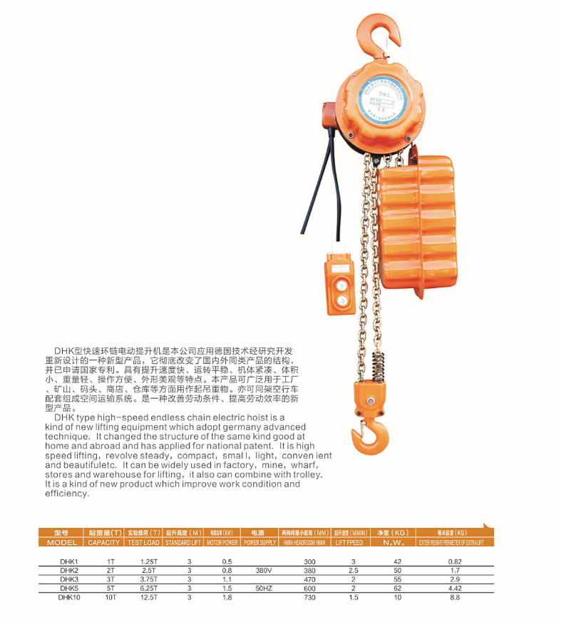 2. DHK TYPE HIGH SPEEED ENDLESS CHAIN ELECTRIC HOIST