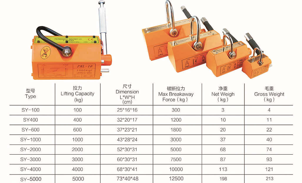 The permanent magnet lifter size is smaller, the lifting force is stronger, and the magnetic force is constant.