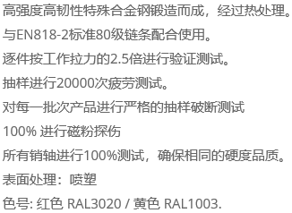 PDQ单钢板夹用于一块或几块钢板的水平升降或翻转。WLL是指在提升角度为60时使用的******载荷。在起重作业中,夹具应成对使用。 MORE